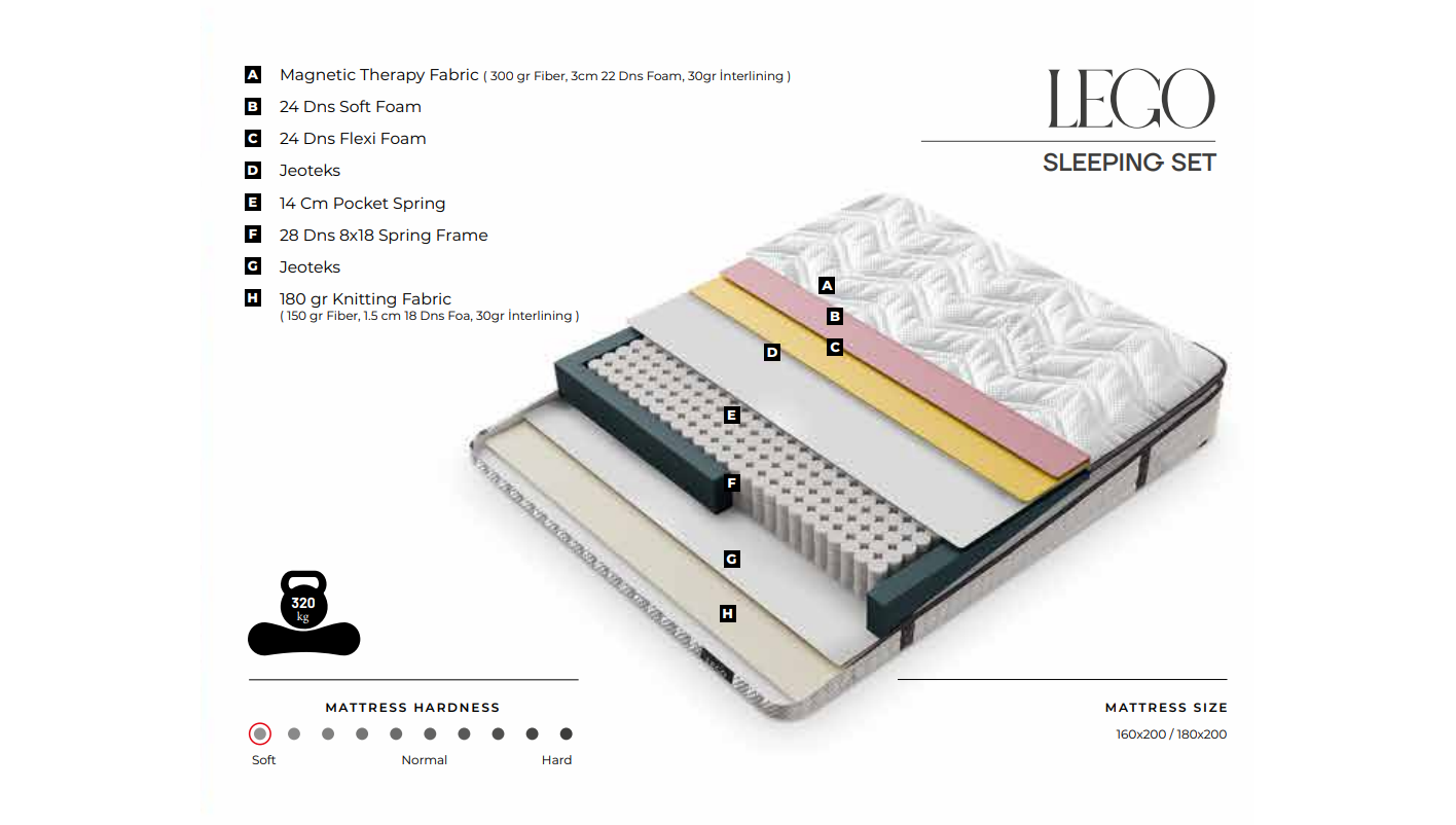 Lego sengen kombinerer moderne design og overlegen komfort for at skabe den perfekte søvn løsning. Den ergonomiske støtte og førsteklasses materialer sikrer, at din krop kan slappe af hele natten. Forbedre din søvnkvalitet og æstetikken i dit soveværelse med Logo seng’s tidløse skønhed.
