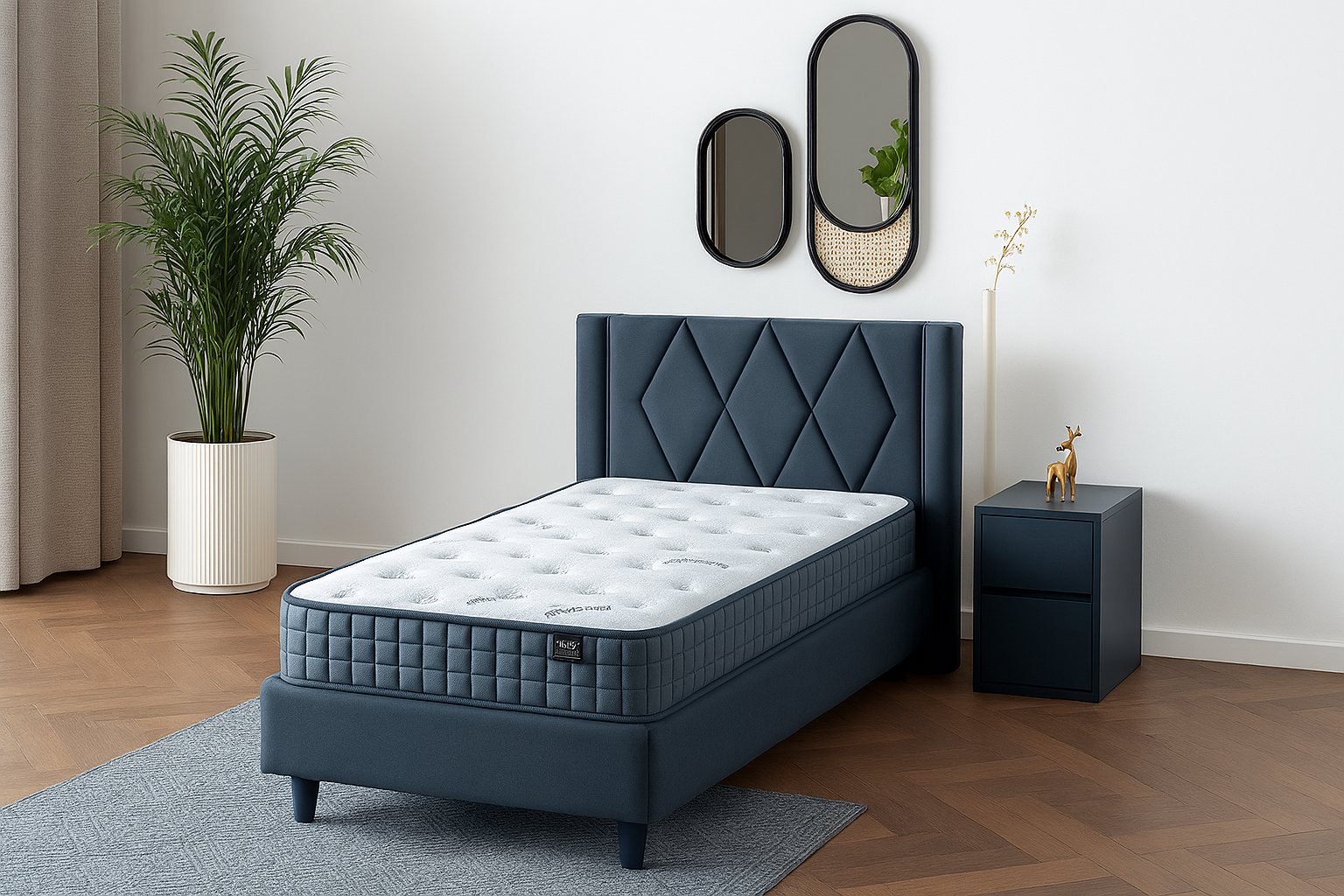 - Tykkelse: 28 cm → Det er en relativt kraftig madras, hvilket betyder, at der er plads til både polstring og fjedre. Det giver en god balance mellem blødhed og støtte.